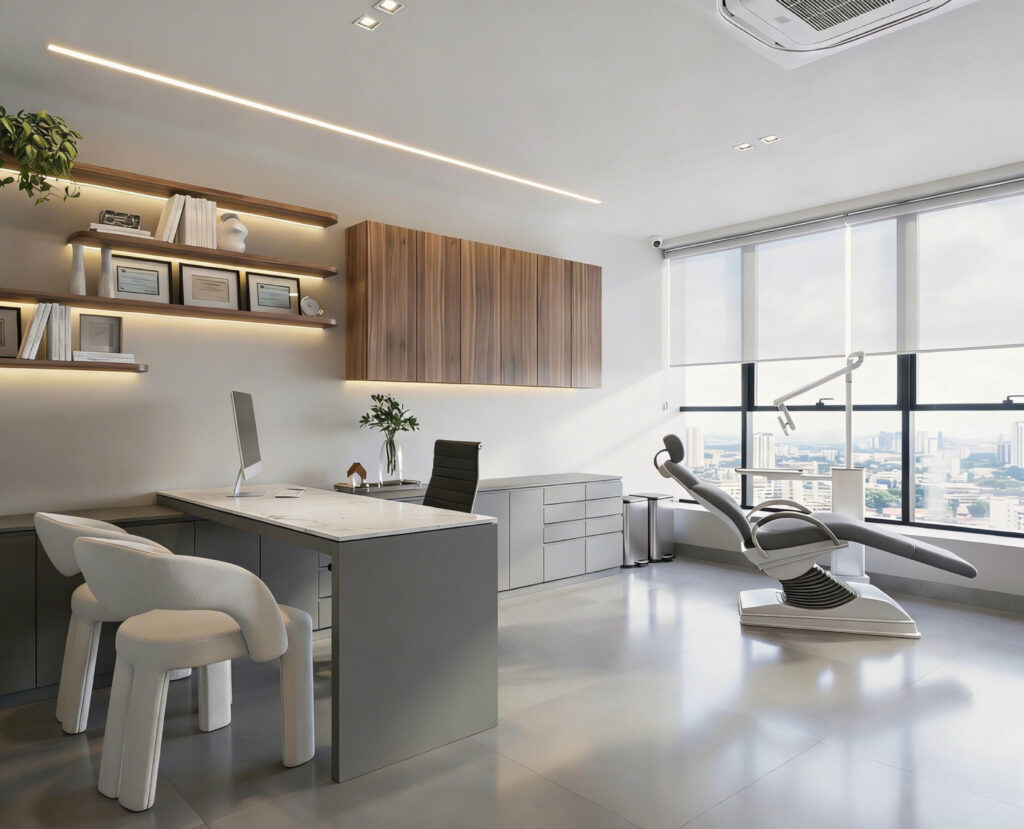 • Mobiliário clínico ergonômico (macas reguláveis, carrinhos auxiliares e iluminação focal)