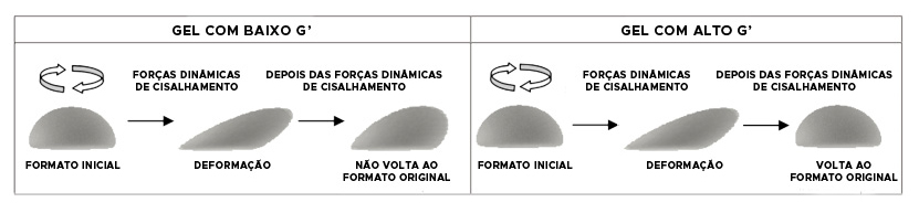 O módulo elástico ou G prime (G’) de um preenchedor está relacionado com a sua capacidade de recuperar sua forma original após sofrer a ação de forças de cisalhamento, medindo assim sua resistência a deformação.